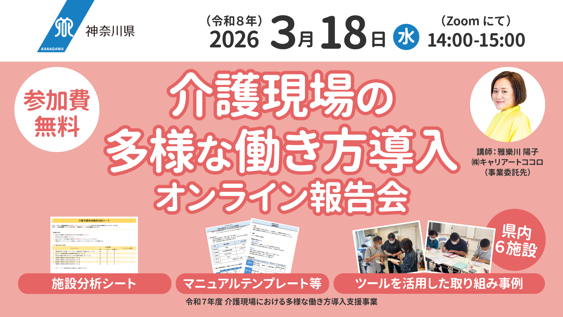 【3/18開催】神奈川県主催「介護現場の多様な働き方導入オンライン報告会」