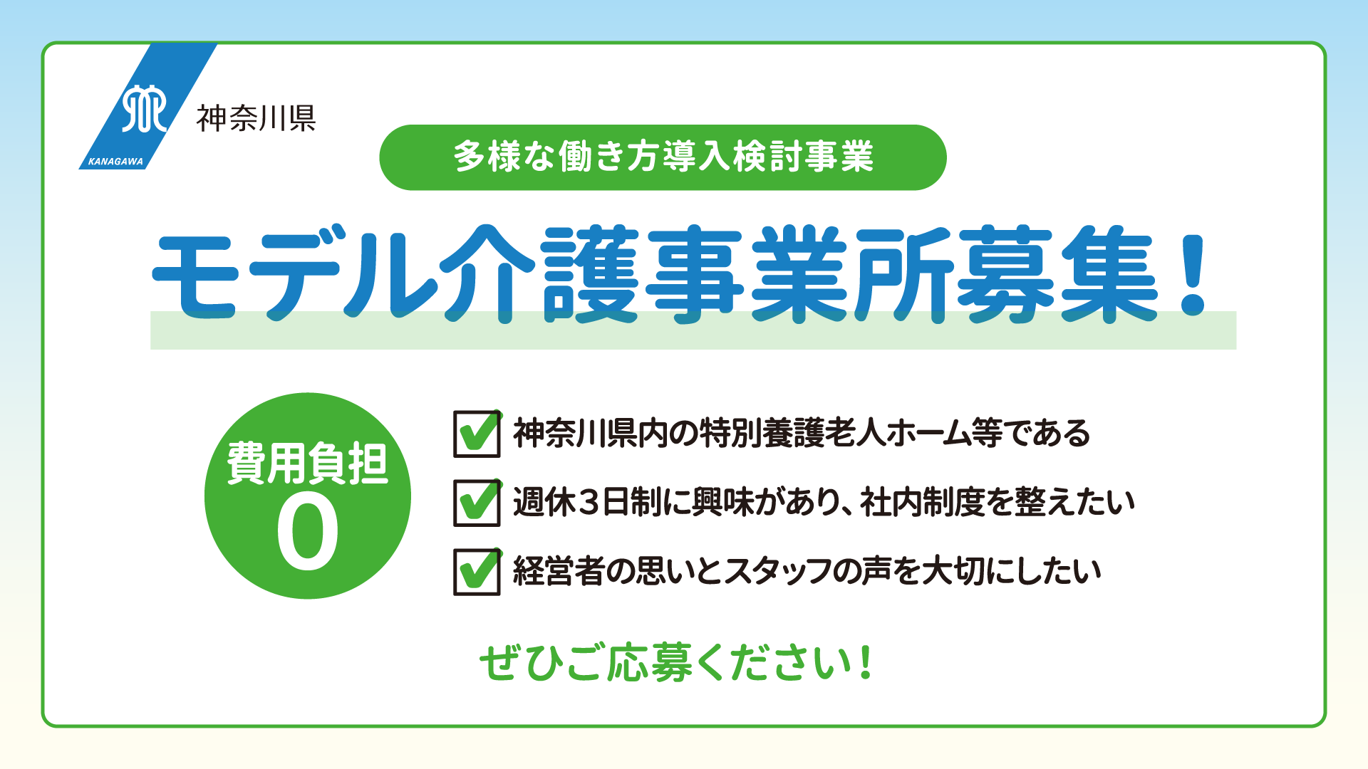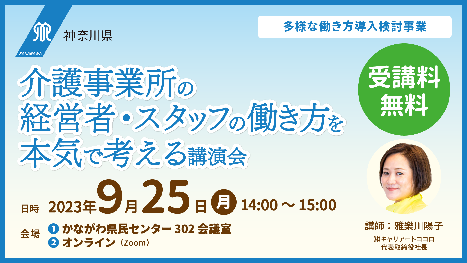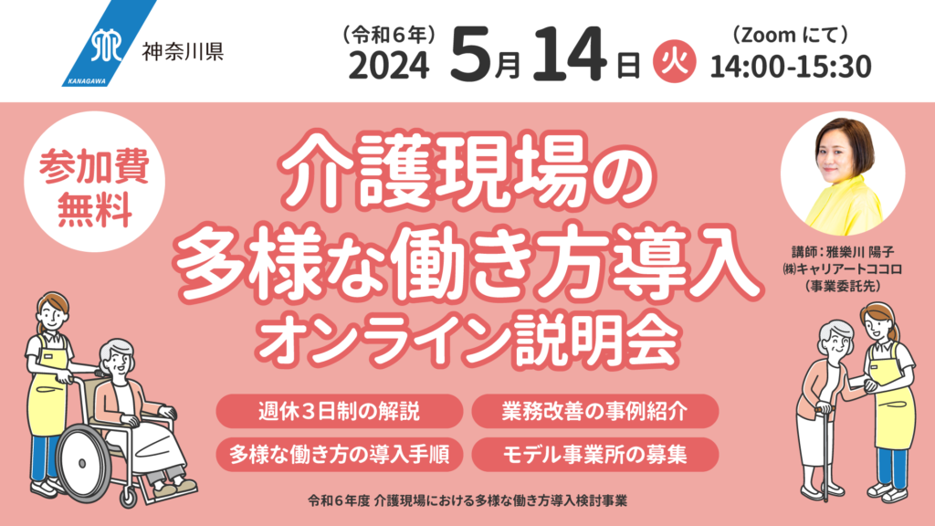 全ての記事一覧 キャリアートココロ > すべてをみる おしらせ 2025/09/09 【施設募集終了】神奈川県|介護現場における多様な働き方導入支援事業 おしらせ 2025/02/20 【終了】神奈川県主催「介護現場の多様な働き方導入オンライン報告会」 おしらせ 2024/06/05 【終了】 神奈川県「介護現場における多様な働き方導入検討事業」【モデル事業所追加募集】 おしらせ 2024/05/13 【メディア情報】上毛新聞に掲載されました おしらせ 2024/04/11 【終了】神奈川県「介護現場における多様な働き方の導入検討事業」【モデル事業所募集】 おしらせ 2024/04/11 【終了】神奈川県主催「介護現場の多様な働き方導入オンライン説明会」 おしらせ 2024/02/26 【終了】神奈川県主催「介護現場における多様な働き方の導入事例」無料オンライン報告会 おしらせ 2023/11/22 【メディア情報】神戸新聞に掲載されました おしらせ 2023/09/12 【終了】神奈川県「介護現場における多様な働き方の導入」【モデル事業所募集】 おしらせ 2023/09/12 【終了】神奈川県主催「介護事業所の経営者・スタッフの働き方を本気で考える講演会」 おしらせ 2023/09/11 【事業採択のお知らせ】神奈川県「介護現場における多様な働き方導入検討事業」 おしらせ 2023/01/11 【終了】経営者様向けの無料オンラインセミナー おしらせ 2022/10/19 【メディア掲載】「まま・ここっと」にて子育て相談の記事が連載されています。 おしらせ 2022/09/06 【セミナー情報】前橋市創業センターにて雅樂川陽子がセミナーを行います。 おしらせ 2022/08/03 【メディア掲載】「群馬県信用保証協会発行の保証月報」に掲載されました。 おしらせ 2022/07/11 【メディア掲載】「まま・ここっと」にて子育て相談の記事が連載されています。 おしらせ 2022/07/04 【メディア掲載】「まま・ここっと」にて子育て相談の記事が連載されています。 おしらせ 2022/06/22 雅樂川陽子が「変化する社会と女性の働き方」セミナーに登壇します。